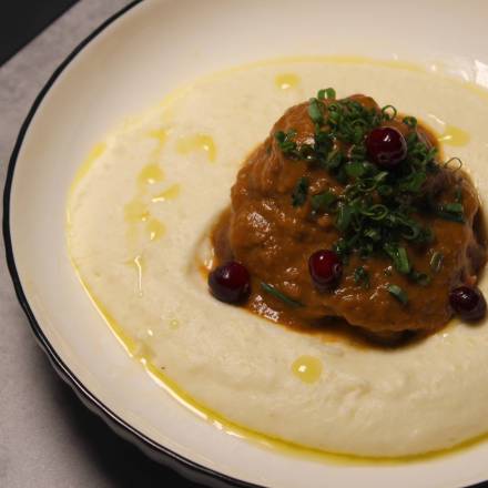 Скёрт-стейк с печеным картофелем и соусом чимичури